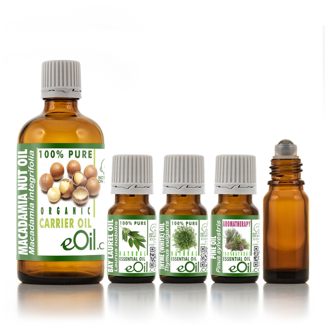 - In the 10 mL roller bottle, add 2 drops each of Bay Laurel, Scots Pine, and Thyme essential oils.